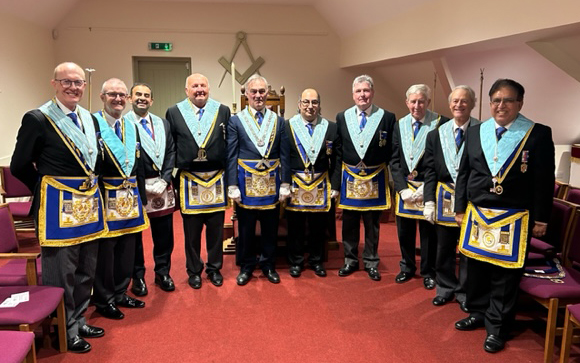 Colourful turn out for Installation meeting at The Oxfordshire Lodge of Installed Masters No. 7770 On Saturday 26th September 2015 the Brethren of the Lodge and guests attended a very happy and convivial Installation meeting when W.Bro. Roy Simmonds, W.Bro. Brian Fairweather and W.Bro. Graham Ellis, W.M. S.W. and J.W. respectively, took office at the meeting held at the Oxford Hotel in Wolvercote, Oxford. The very august group which included the Provincial Deputy Grand Master W.Bro. Neal Spencer witnessed a superb ceremony by Installing Master W.Bro. Keith Mitchell, including an excellent rendition of the rarely seen extended Inner Workings. Thanking all those members that assisted in the ceremony, in particularly W.Bro. Mitchell for the huge effort he had undertaken to improve the member's enjoyment of the Lodge, W.Bro. Simmonds stated that his intentions were to visit, with hs Wardens and other members of the Lodge, as many surrounding Provinces as possible during his year in office, but most of all to ensure that all the members have a fun year! The afternoon concluded when the Brethren retired to enjoy an excellent Festive Board, with much merriment and humour.Captain |